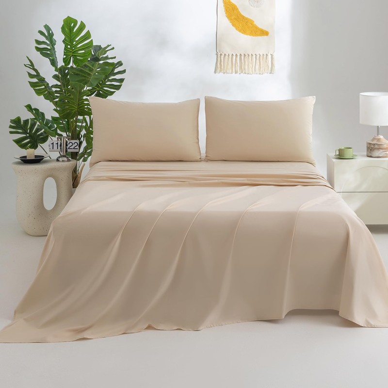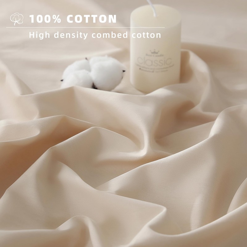 Jessrydo 100% Cotton Sheets King Size Sheets Deep Pocket Fits 18"-24" Mattress Luxury Soft Breathable Cooling Beige Cotton King Sheet Set 4 Pieces Cotton Bed Sheets