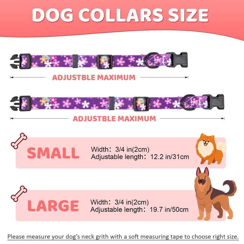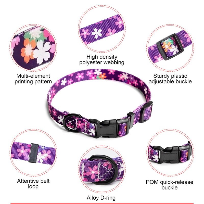 - Cute Floral Design: With its cute printed pattern, this floral dog collar adds a stylish touch to your pet's wardrobe. Ideal as a female dog collar or a puppy collar, the charming design is perfect for small dog collars for female dogs looking to showcase their personality