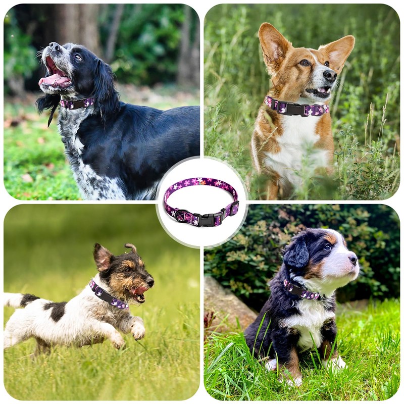 Jestrem Dog Collar, Cute Adjustable Soft and Comfortable with Printed Pattern Pet Collar for Small Medium Large Dog, Purple