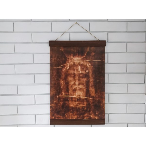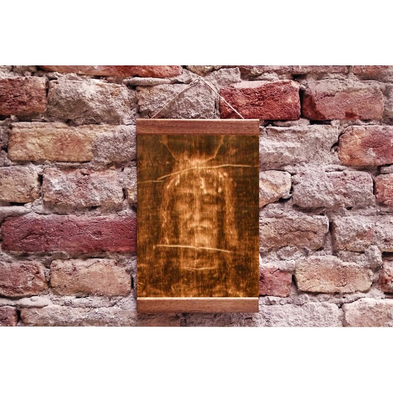 Jesus Christ Face Of The Shroud of Turin, Face of The Old Linen Wood Framed Canvas Print, Perfect Gift Vail of Turin Linen Face Size: 8.7" x 11.8" (22cm x 30cm)
