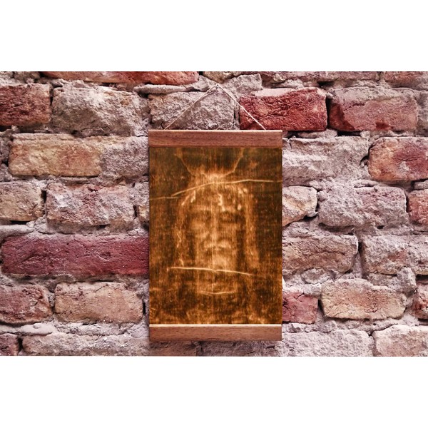 Jesus Christ Face The Shroud of Turin, Face of The Old Linen Wood Framed Canvas Print, Perfect Gift Vail of Turin Linen Face Size: 11.8" x 15.7" (30cm x 40cm)