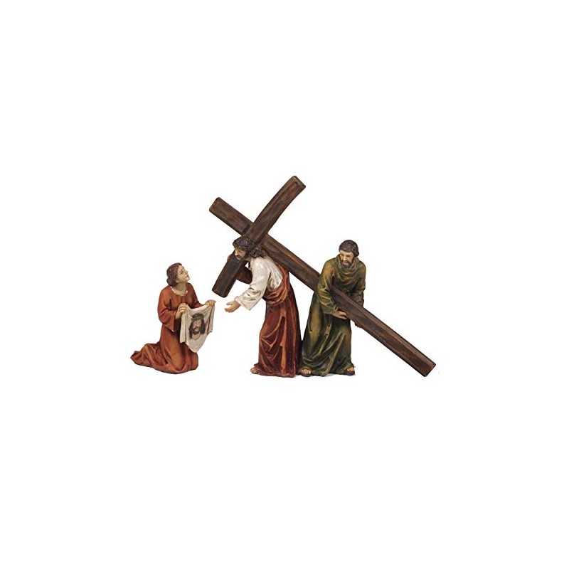 Jesus Cross Holders, Veronica and Samaritan Resin Easter Nativity Scene 16.5 x 19 cm Paben