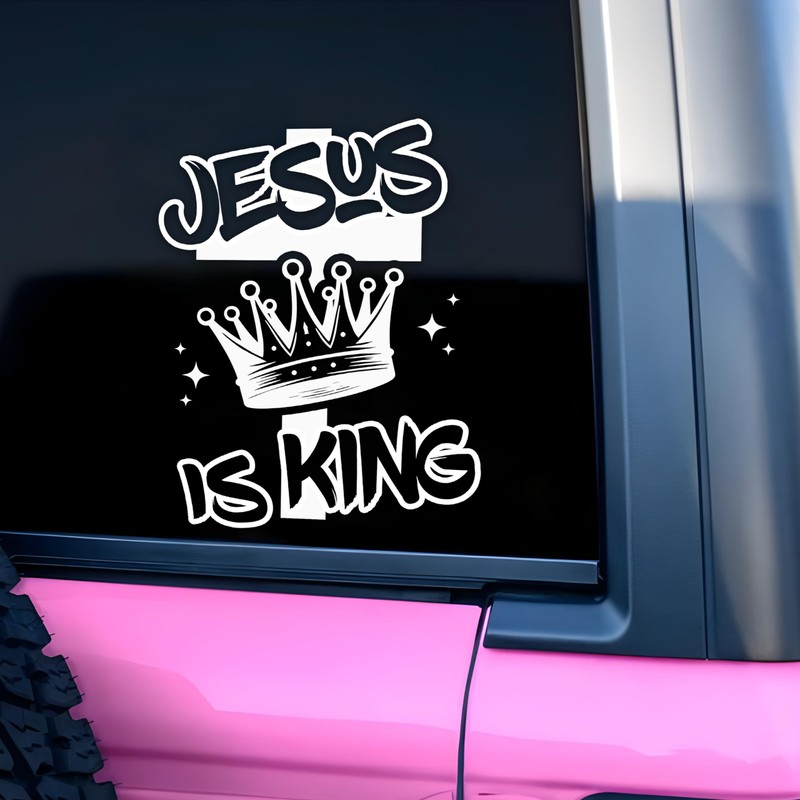 Jesus is King Crown Car Decal Christian Religious Bible Verse Gifts Car Mirror Decals Accessories Affirmations Funny Vinyl Waterproof 8 Inches Bumper Decal Gifts for Mom Dad Friend Coworker