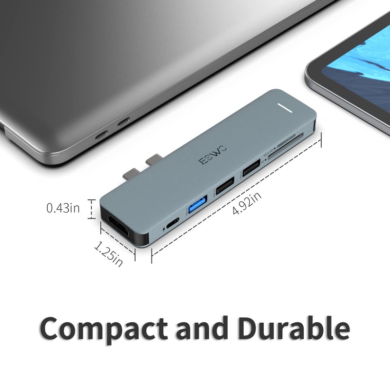 JESWO HUB USB C, 7 en 2 Adaptador USB C a HDMI 4K, 1*USB 3.0, 2*USB 2.0, 1*Multifuncional Tipo C, Lector Tarjeta SD/TF, Compatible con MacBook, MacBook Pro, MacBook Air - No Utilizar con Funda