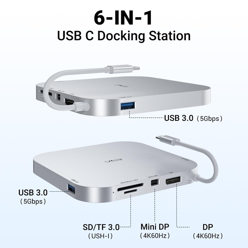 JESWO Mac mini M4 Dock Hub, Compatible with Mac mini M4 and M4 Pro 2024, Featuring a 4K60Hz DP & miniDP Port, 5Gbps USB Port, and SD/TF Card Slot