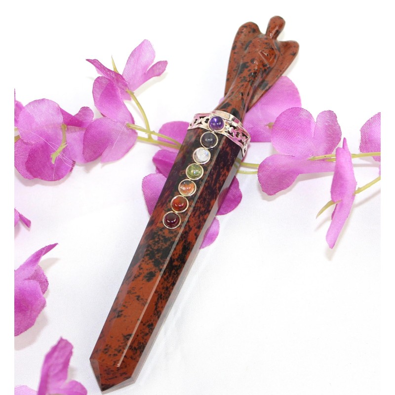 - Jet Energized Mahogany Obsidian Angel Chakra Wand Stick Approx. 6.5 inch Long Approx. 100 grams Weight. Energized Wand Free 40 Page Booklet on Jet International Crystal Therapy. Best for Healing Purposes. Also used for Reiki, Meditation, Positive Energy, Massage, Sound Sleep, Chakra Balancing, Any Disorder, Peace of Mind, Concentration, etc. Image shown here is just a reference, since all our products are handcrafted & carved - there might be slight deviation in size, shape, color.