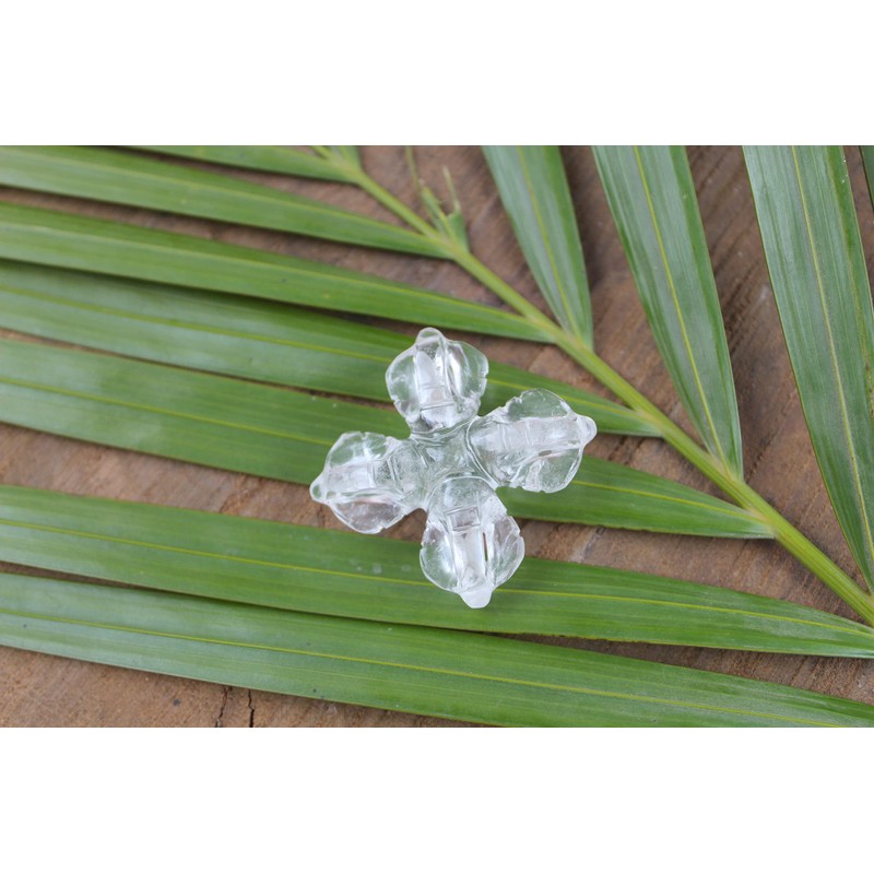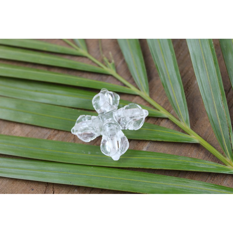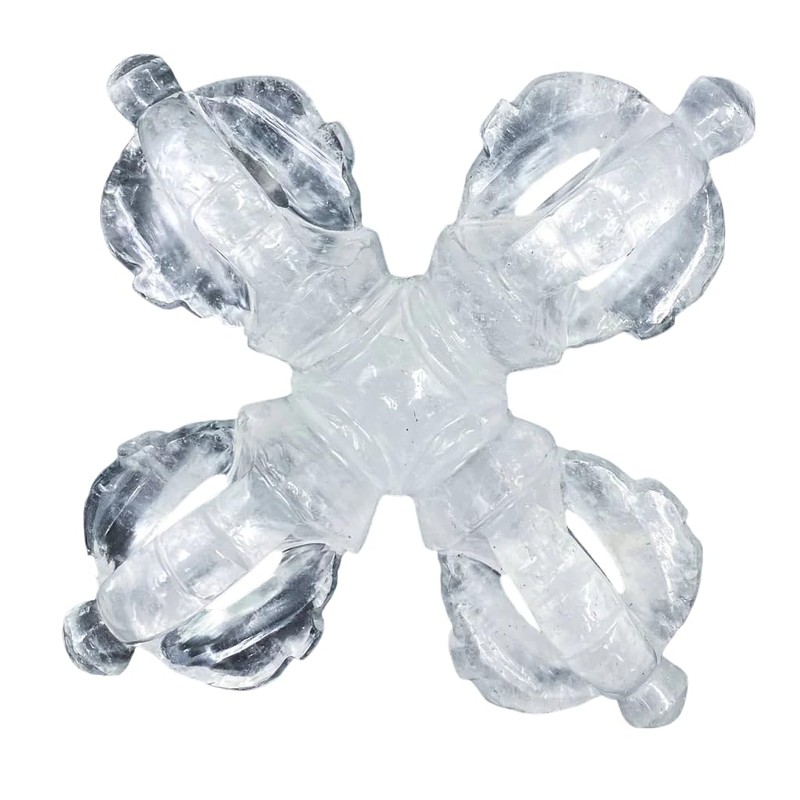 - Prajet Mini Crystal Quartz Double Dorje 2 inch Tibetan Nepal Vajra Carving Deity Dagger Pendant