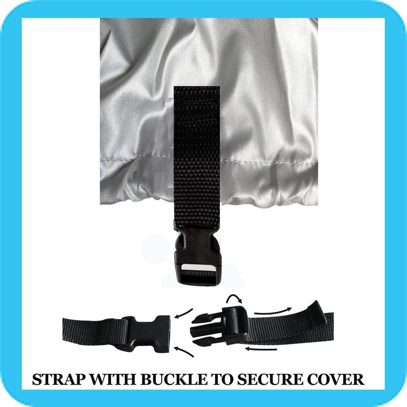 - Features a heavy-duty, elastic, shock-cord encased in the hem to keep the cover snug to the jetski or PWC. One strap in the middle can be used for added security. Semi-Custom universal wrap. Reflective finish.