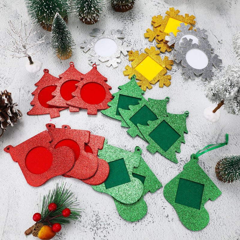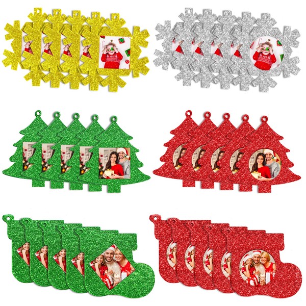 - Sufficient quantity: you will receive 30 pieces Christmas photo ornament frames with glitter design, 3 styles stocking, snowflake, Christmas tree, each Christmas photo ornament frame with 5.51 inch/ 14 cm rope of corresponding color, you can put photos of different sizes in this beautiful photo frame, very suitable for decorating your Christmas tree