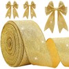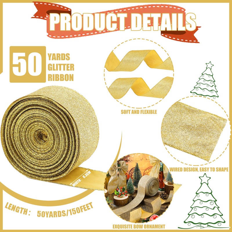 Jetec Christmas Glitte Wired Ribbon 2.5 x 50 Yards for Tree, Bows Making, Wreath Supplies, Gift Wrapping Garland, Home Decor, DIY Crafts(Gold)