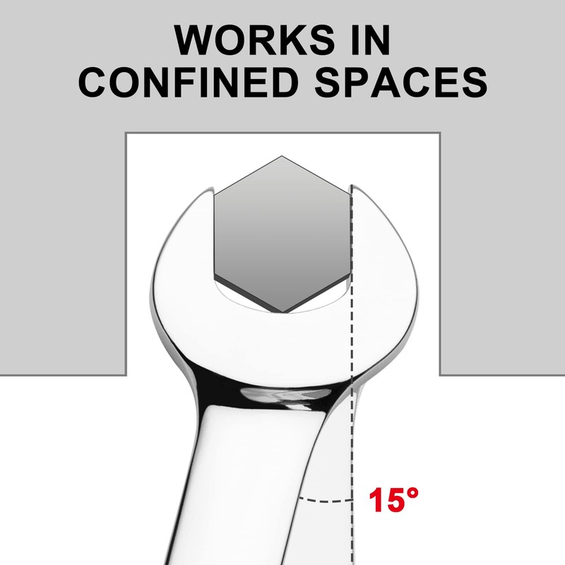 - 72-TOOTH RATCHETING - 72-tooth ratcheting box end needs only a 5-degree minimal swing arc to operate it. Perfect for working at these confined areas.