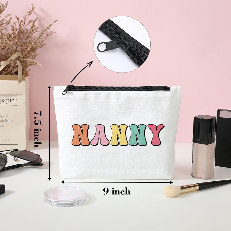 Jeteman Makeup Bag Gift for Nanny, Mother's Day Gift Birthday Gift for Nanny, Nanny Gifts, New Grandma Gift, Funny Grandma Gift, Summer Beach Travel Toiletry Accessories Bag