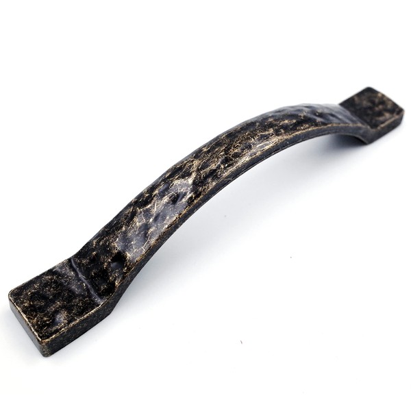 Jetland Arched Hammered Cabinet Pulls - 2-Pack, Antique Brass, 5" Hole Centers, Rustic Solid Cast Handle Pulls for Dresser Nightstand Furniture, HT0611ABR127