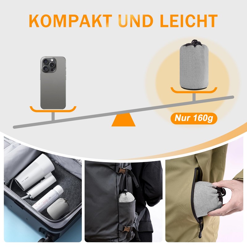• KOMPAKT UND LEICHT: Dieses aufblasbares nackenkissen ist im unaufgefüllten Zustand extrem leicht und tragbar. Im mitgelieferten Aufbewahrungsbeutel lässt es sich auf die Größe einer Getränkedose komprimieren, was platzsparend ist und den Transport auf langen Reisen erleichtert