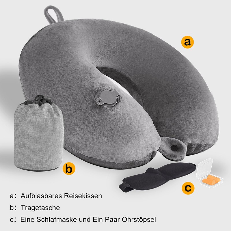 • SORGFÄLTIG ZUSAMMENGESTELLTES SET: Das reisekissen aufblasbar Set umfasst ein aufblasbares Kissen, eine Stautasche, eine Schlafmaske und ein Paar Ohrstöpsel. All diese Komponenten können in der Stautasche untergebracht werden, was Platz spart und dafür sorgt, dass Ihre Reise immer behaglich und geordnet ist