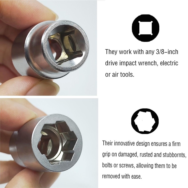 Designed with a standard 3/8" drive, these sockets are compatible with various manual and power tools. This versatility allows you to seamlessly switch between tools for different applications.