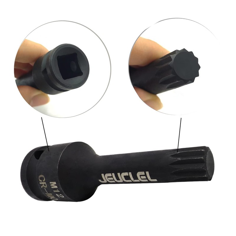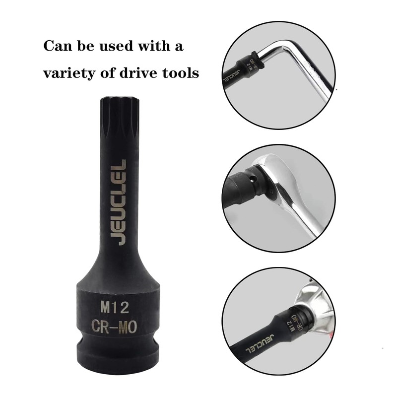JEUCLEL M12 Triple Square Impact Spline Bit Socket, 12mm Metric 1/2-Inch Impa...