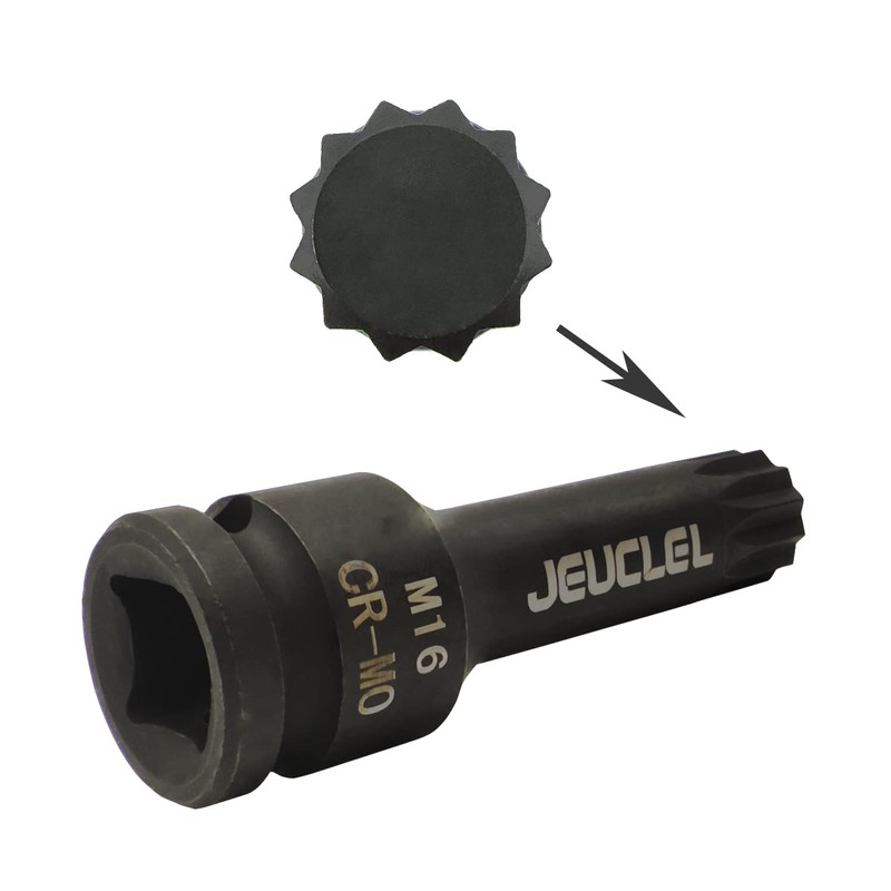 JEUCLEL M16 Triple Square Impact Spline Bit Socket, 16mm Metric 1/2-Inch Impact Drive Triple Square Socket, Cr-Mo Steel Lengthen Screwdriver Socket Adapter