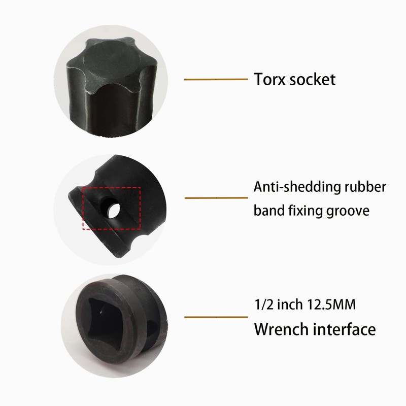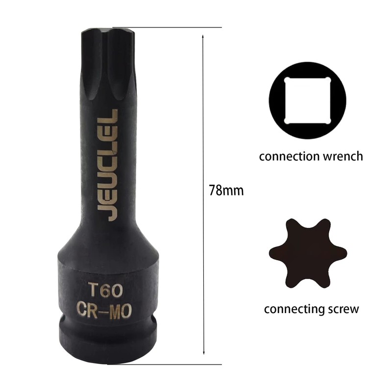 - 【Specification】 1/2-Inch Impact Drive Socket, T60 torx spline bit, 3.07-inch (78mm) total length. The lengthened design makes it suitable for more work scenarios.