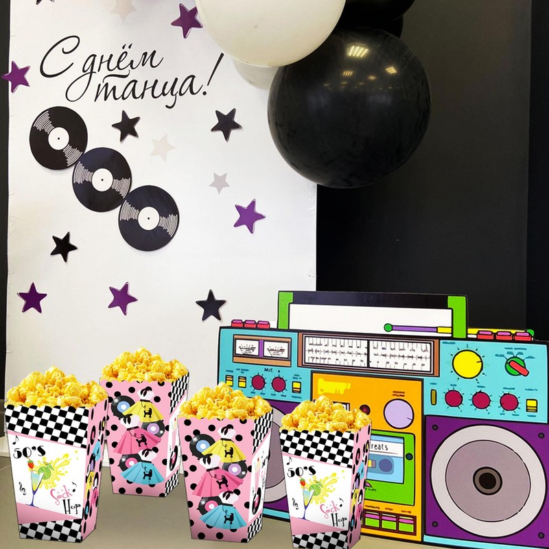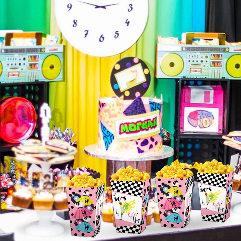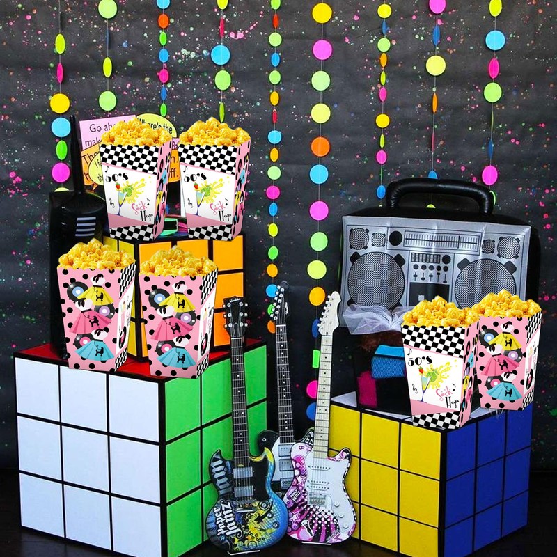 JeVenis 50s Sock Hop Party Popcorn Boxes 50s Theme Party Decorations 1950s Decorations 1950s Rock N Roll Party Boxes
