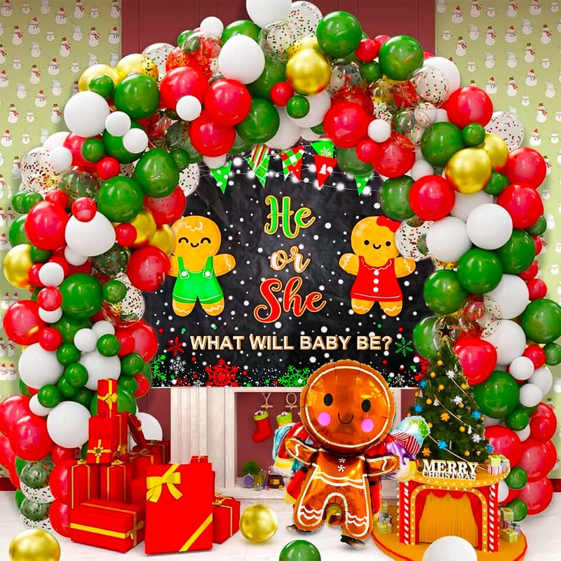 JeVenis Christmas Gender Reveal Backdrop Balloons Christmas He or She What's Baking Party Decoration Boy or Girl Baby Shower Decoration Supplies Favors Photobooth Props