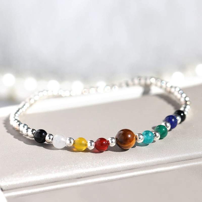 Jewboo 925 Sterling Silver Bracelets for Women Bracelet with Real Stones Healing Crystals and Healing Stones Yoga Meditation Balance Stretch (Black obsidian)