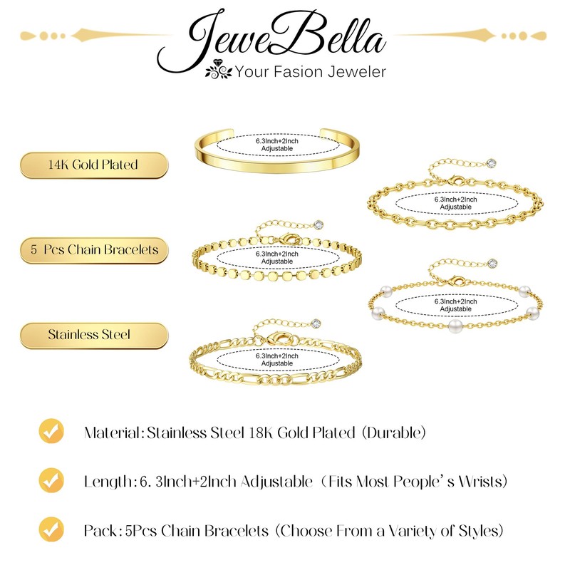 - ☎️JeweBella After-Sales Service☎️---JeweBella offers peace of mind 365 days a year. If you have any questions about these gold bracelets for womens, please contact us via email. We will resolve it for you as soon as possible and we hope you have a great shopping experience.