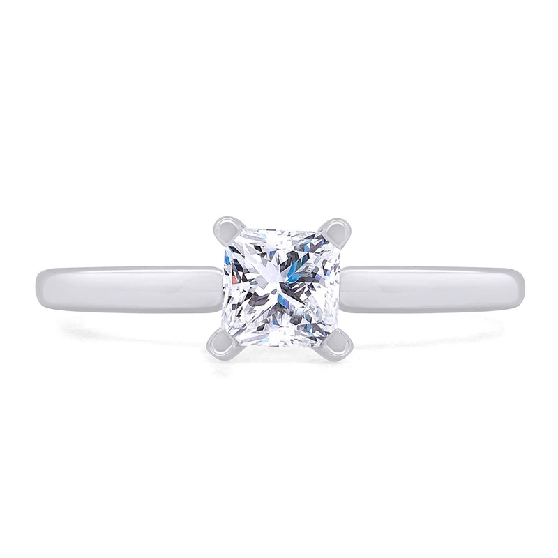 Jewel Zone US Princess Cut White Cubic Zirconia Anniversary Solitaire Ring in 14k White Gold Over Sterling Silver (0.5 Carat)