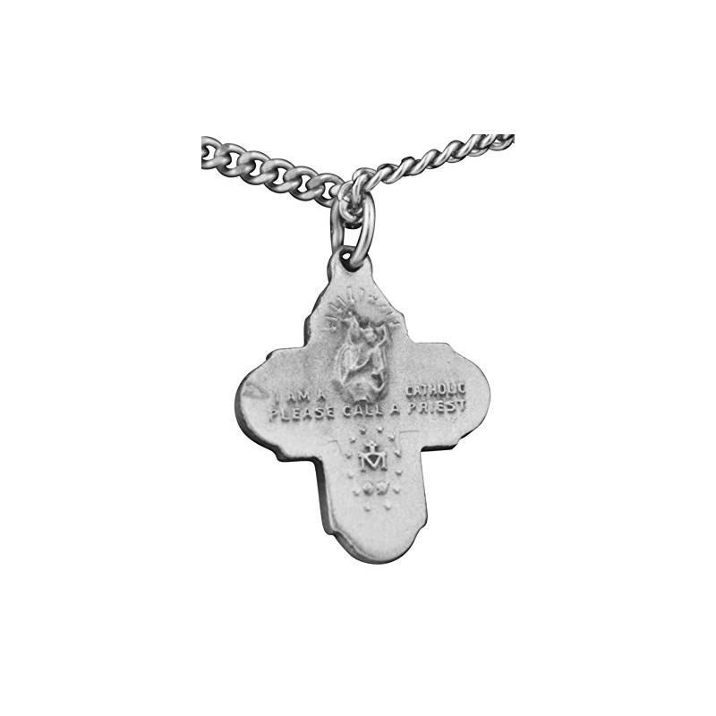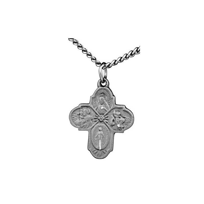 Jeweled Cross Small Pewter Four-Way Medal with 18" Chain