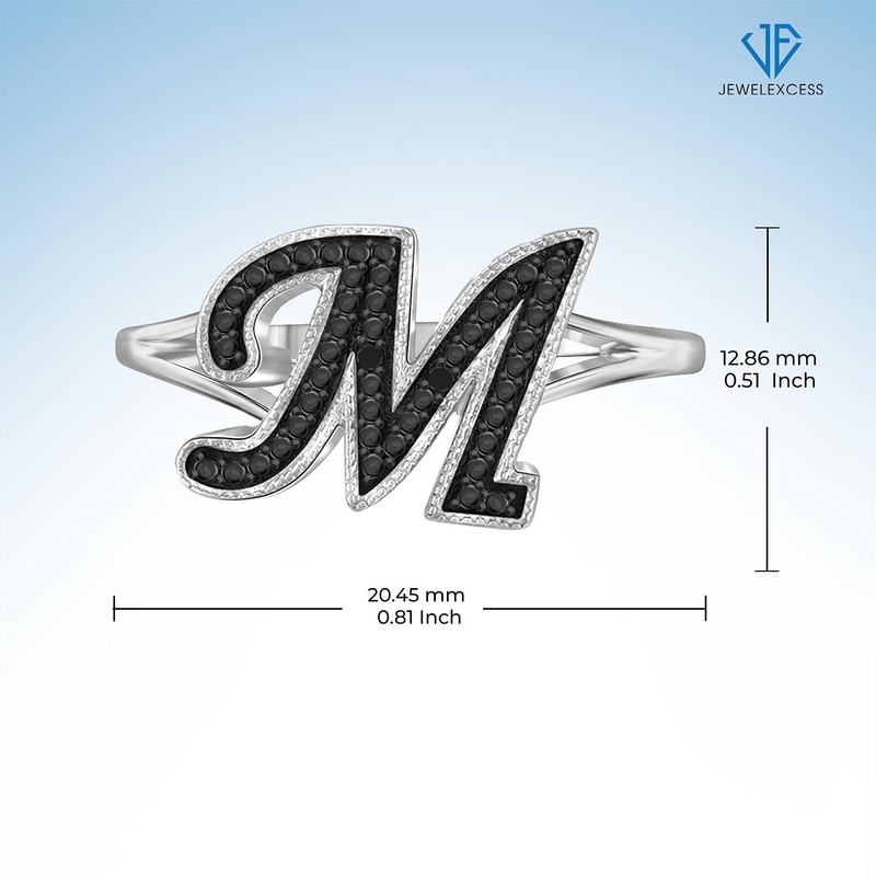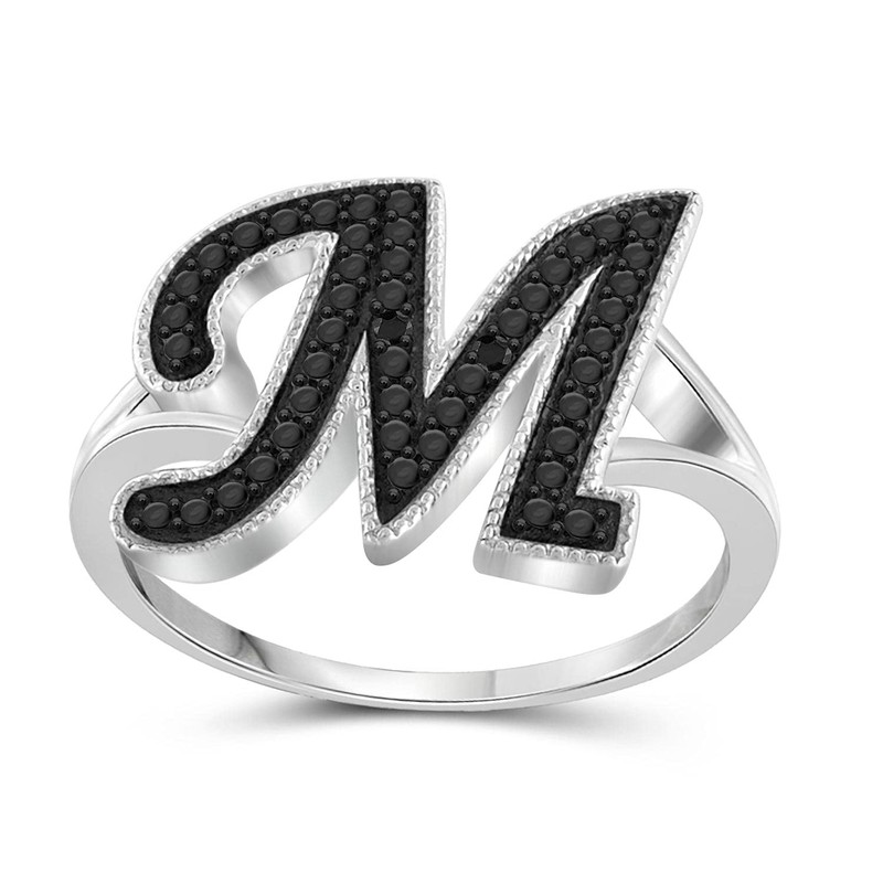 JEWELEXCESS Black Diamond Accent Sterling Silver A TO Z Initial Spell it Out Ring