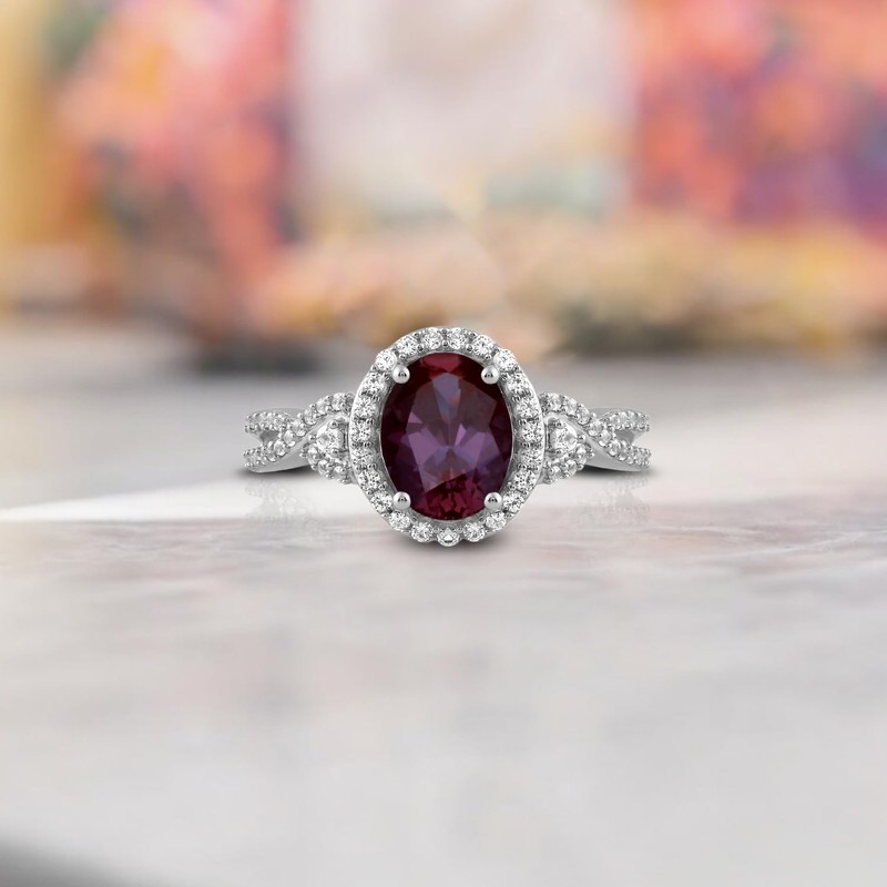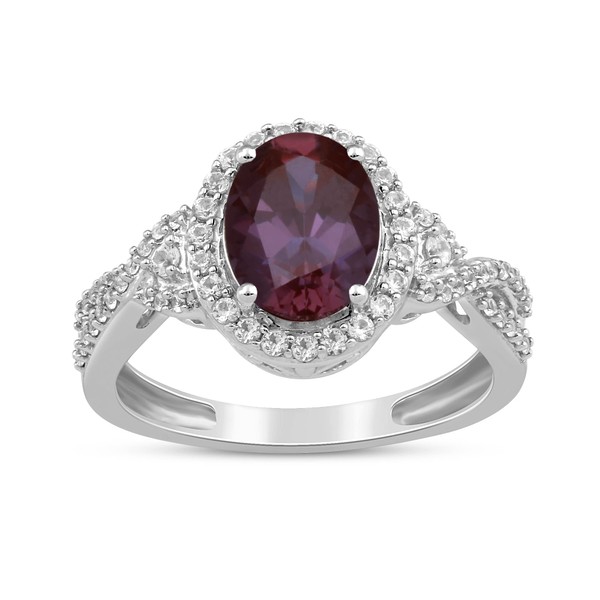 - Embrace your fashionable side with this ring styled in 9x7MM alexandrite and round created white sapphires set in 925 sterling silver.