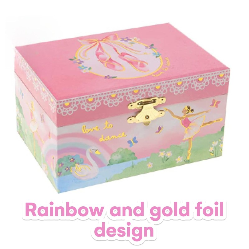 Jewelkeeper Girl's Musical Jewelry Storage Box with Spinning Ballerina Figurine, Rainbow and Gold Foil Design, Swan Lake Tune, Jewelry Box for Girls, Music Box for Girls, Girls Musical Jewellery Box