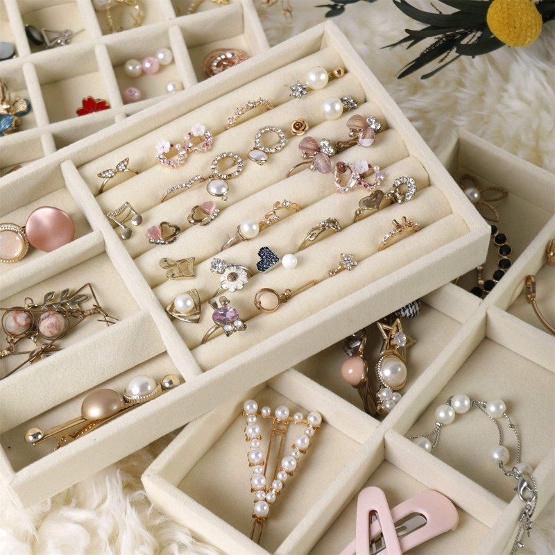 Jewellery Trays for Drawers, Set of 4 Stackable Jewellery Inserts Dividers Box Storage Organiser Compartments, Beige