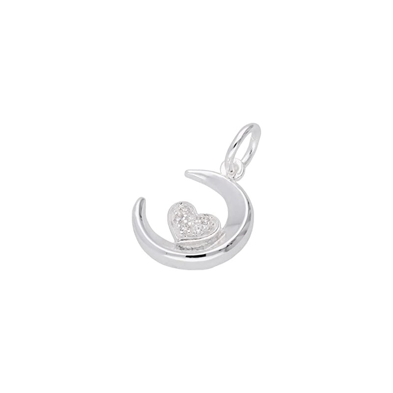 jewellerybox Sterling Silver & CZ Crescent Moon & Heart Charm