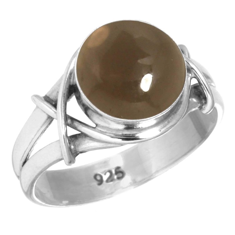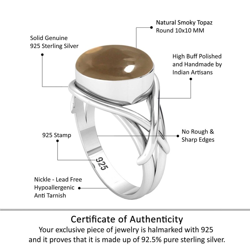 - Gemstone - Good Quality Smoky Topaz Gemstone Round Shape Cabochon 10 MM . This Brown Silver Ring is for traditional June Birthstone.