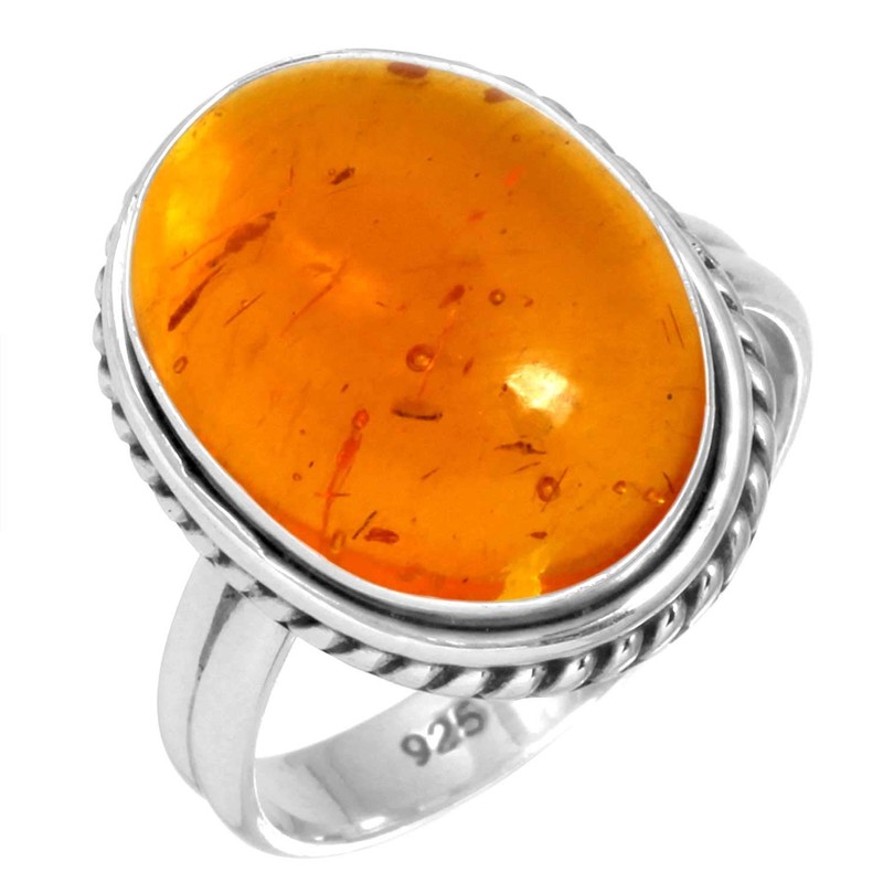 - Gemstone - Good Quality Amber Gemstone Oval 12x16 MM. This Orange silver ring is for traditional November Birthstone.