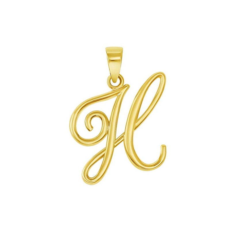 - This personalized elegant solid gold 14 karat gold capital letter H charm pendant in cursive handwriting script font is a perfect fit for necklaces and bracelets