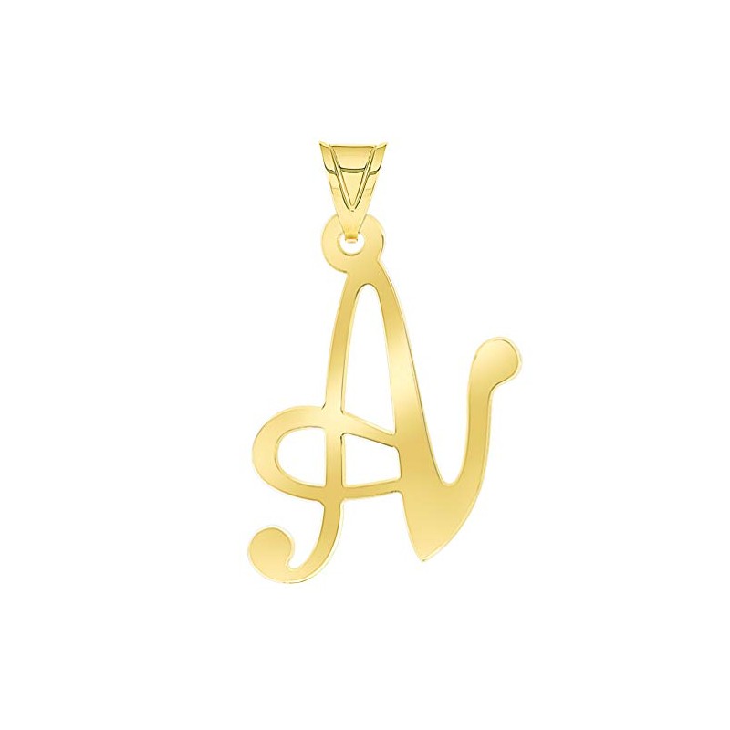 Jewelry America Solid 14k Yellow Gold Uppercase Script Initial A Cursive Letter Pendant (Small)