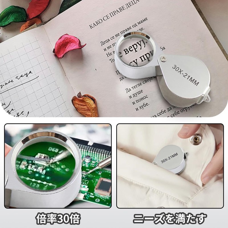 - (30x Magnification) Uses 30x magnification ultra clear glass lenses, which are made of non-slip material and an easy to hold handle