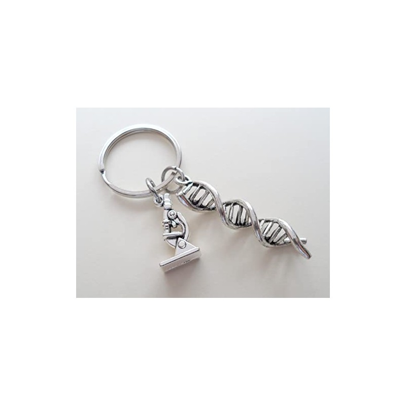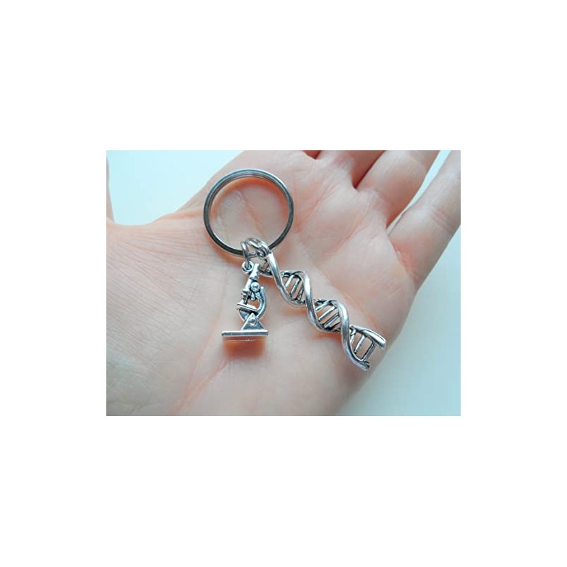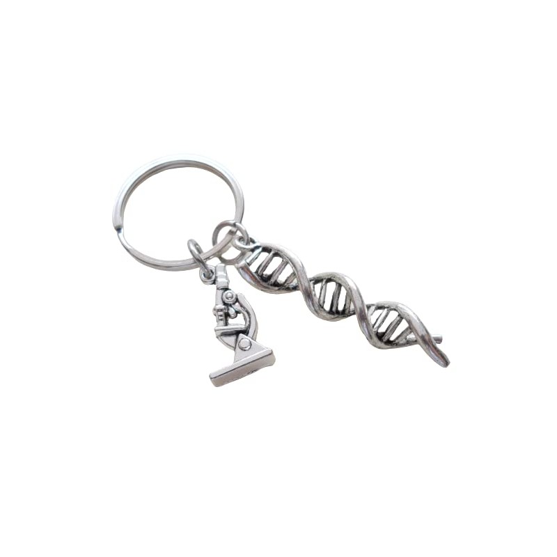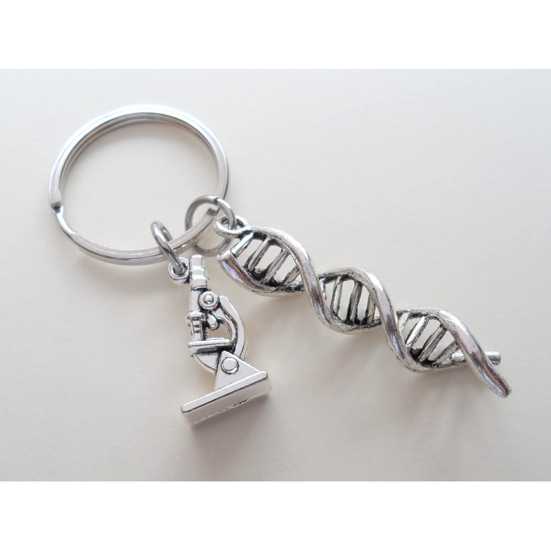 - DNA double helix keychain with a microscope charm is a great gift for a science major, or medical student.