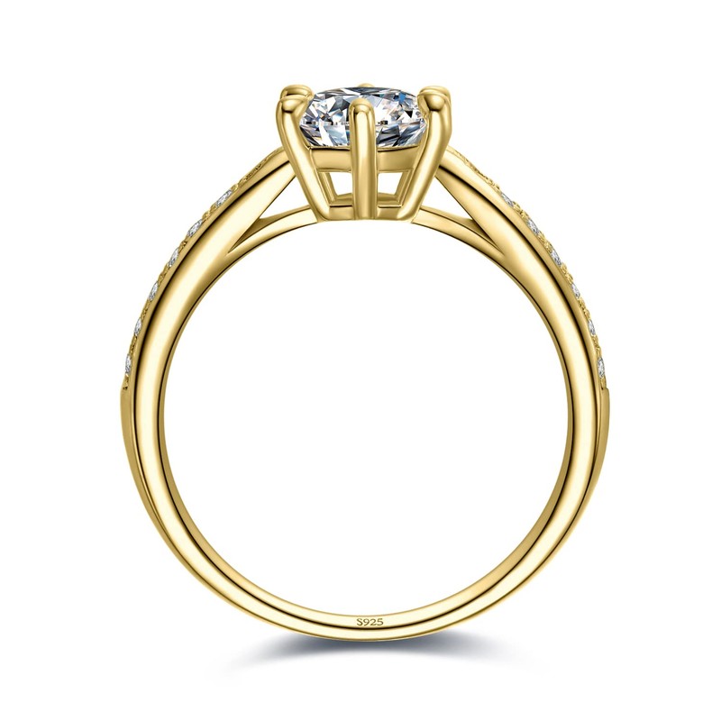 JewelryPalace Classic 1ct Cubic Zirconia Solitaire Engagement Rings for Women, 925 Sterling Silver Yellow Gold Promise Ring for Her, Round Cut Simulated Diamond Anniversary Wedding Rings Size 7.5