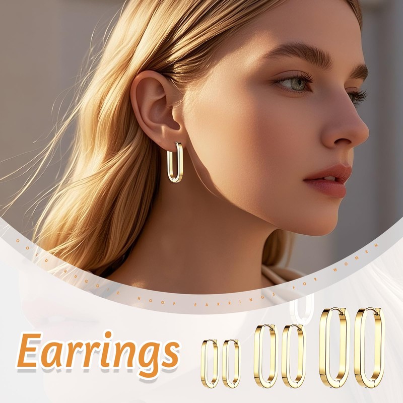 - Elegant 3 sizes design: this stylish set contains three pairs of oval hoop earrings in different sizes (16.8 mm, 22.5 mm and 28.5 mm), which are perfectly matched. The modern rectangular shape with rounded edges combines geometric clarity with soft elegance. Wear all three sizes for a tiered look in multiple ear holes or switch between different sizes depending on your outfit and occasion for maximum versatility.