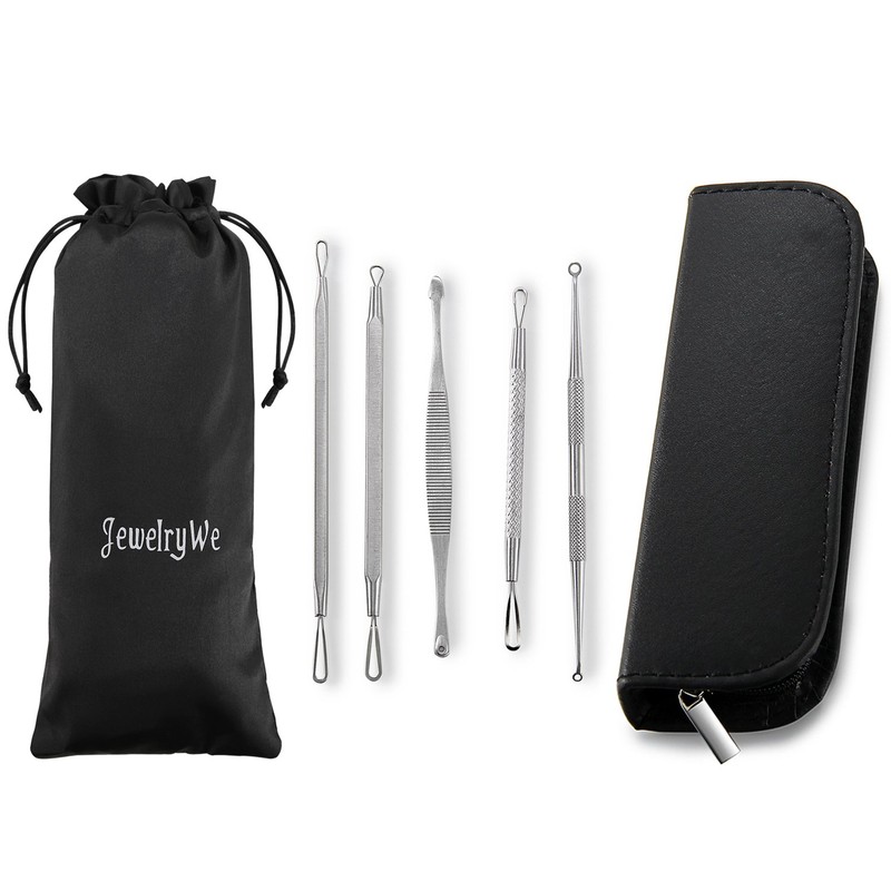 JewelryWe Blackhead Remover Pimple Comedone Extractor Tool Best Acne Removal Kit - Treatment for Blemish, Whitehead Popping, Zit Removing for Risk Free Nose Face Skin with Black Box