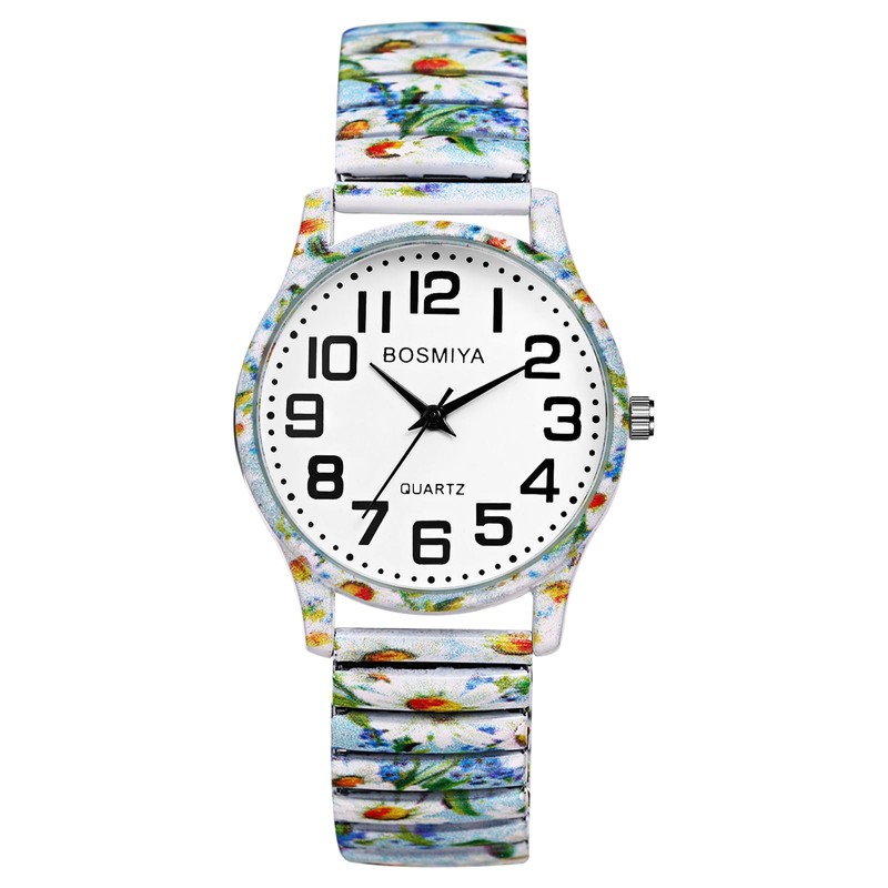 - STYLISH ELASTIC WATCH -- Round watch case features easy reader dial, fashionable floral printing expansion watchband. Simply and elegant dressing watch ideal for any occasions. Unique design combining fashion and business casual to bring you many compliments.