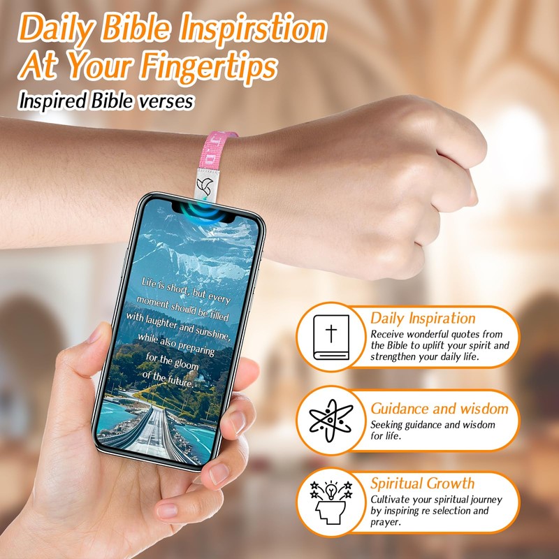 - Adjustable size: this bracelet has an adjustable design, suitable for people with different wrist sizes. You can easily adjust the size of the bracelet according to your wrist size. The bracelet has a built-in NFC chip that allows you to retrieve selected bible verses daily by scanning it with your smart device. Velvet length: 9.45 inches (24 cm), width: 0.51 inches (13 mm).