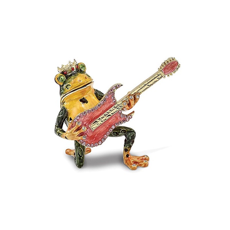 • Luxury Giftware Pewter Bejeweled Crystals Gold-tone Enameled KEITH Rocks Musician Frog Trinket Box with Matching 18 Inch Necklace Is Made By Brilliant Jewelers With You In Mind or For That Special Someone