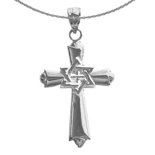 Jewels Obsession Messianic Cross Star Of David Necklace | Rhodium-plated 925 Silver Cross With Star of David Pendant with 18" Necklace