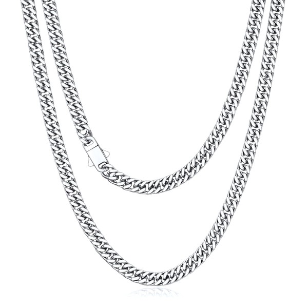 Jewlpire Silver Chain for Men, Mens Chain, 6MM Silver Cuban Link Chains Necklace for Men, No Tarnish, Hip-Hop Stainless Steel Chains Necklace, Mens Jewelry Gifts in Gift Box, 20 Inch
