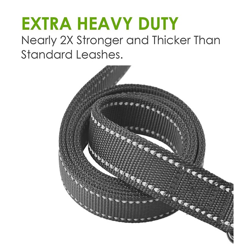- MAXIMUM TOUGHNESS AND DURABILITY: Nearly 2X thicker and stronger than standard dog leashes. 3mm thick and 1 wide with tightly webbed nylon for enhanced rugged construction.