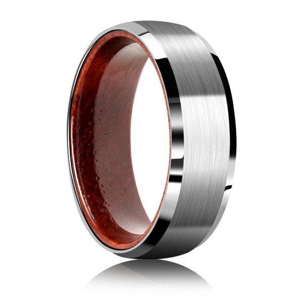 JEWPER Tungsten Rings for Men Womens 8mm Black Silver Fashion Promise Wedding Band Carbide Inner Hole Inlaid flower pear wood Chamfer Frosted Matte Finish Edge Comfort Fit size 7-12(10)